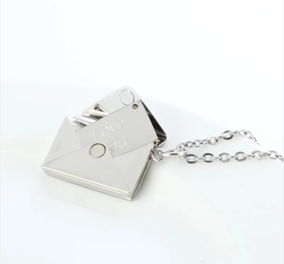 • Hidden Love Note Design: Unique envelope pendant that symbolizes secret messages and meaningful connections.